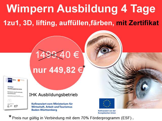 4 Tage Wimpern Kurs; statt 1499,40 Euro nur 449,82 Euro