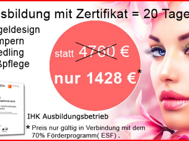 14 Tage Nageldesign Ausbildung nur 756,84 Euro* mit Zertifikat Sontheim an der BrenzPreis erfragen14 Tage Nageldesign Ausbildung günstig im Paket mit Zertifikat. 2in1 Ausbildung. Qualitäts-Ausbildung nach deutschen und europäischen Richtlinien. Dieser Kurs beinhaltet die Nageldesign Ausbildung und die kosmetische Fußpflege Ausbildung. Gerne Perso...